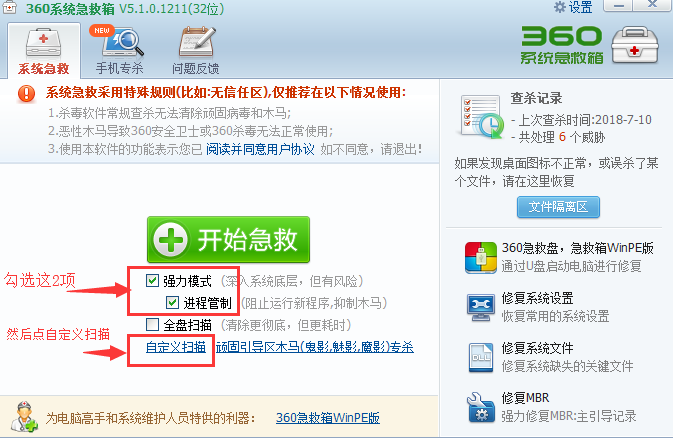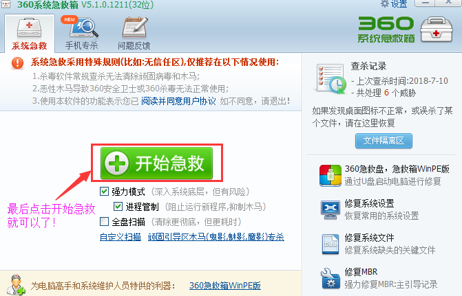 8.【完成上面设置后就可以开始点击急救查杀了】